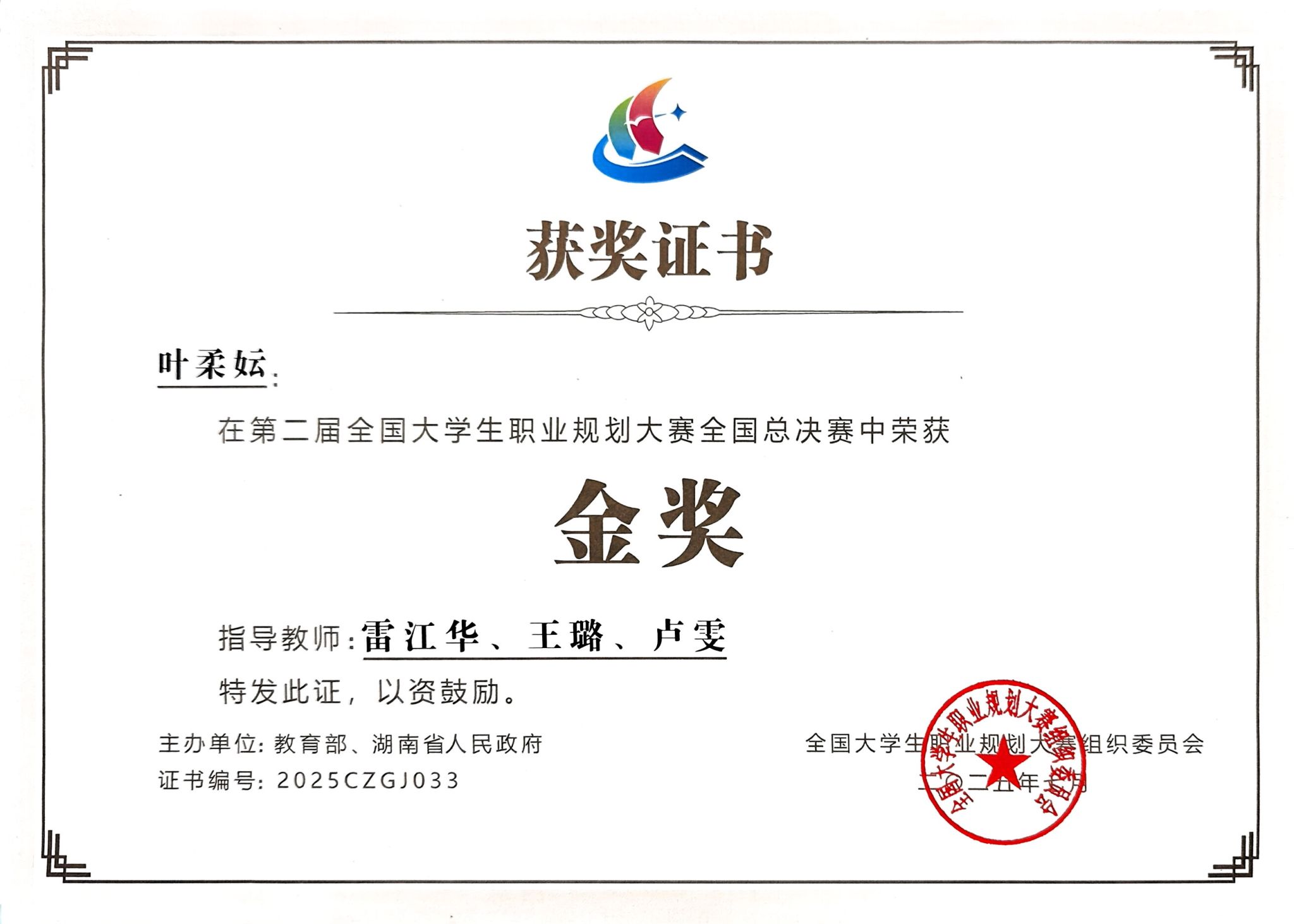 叶柔妘获第二届全国大学生职业规划大赛金奖