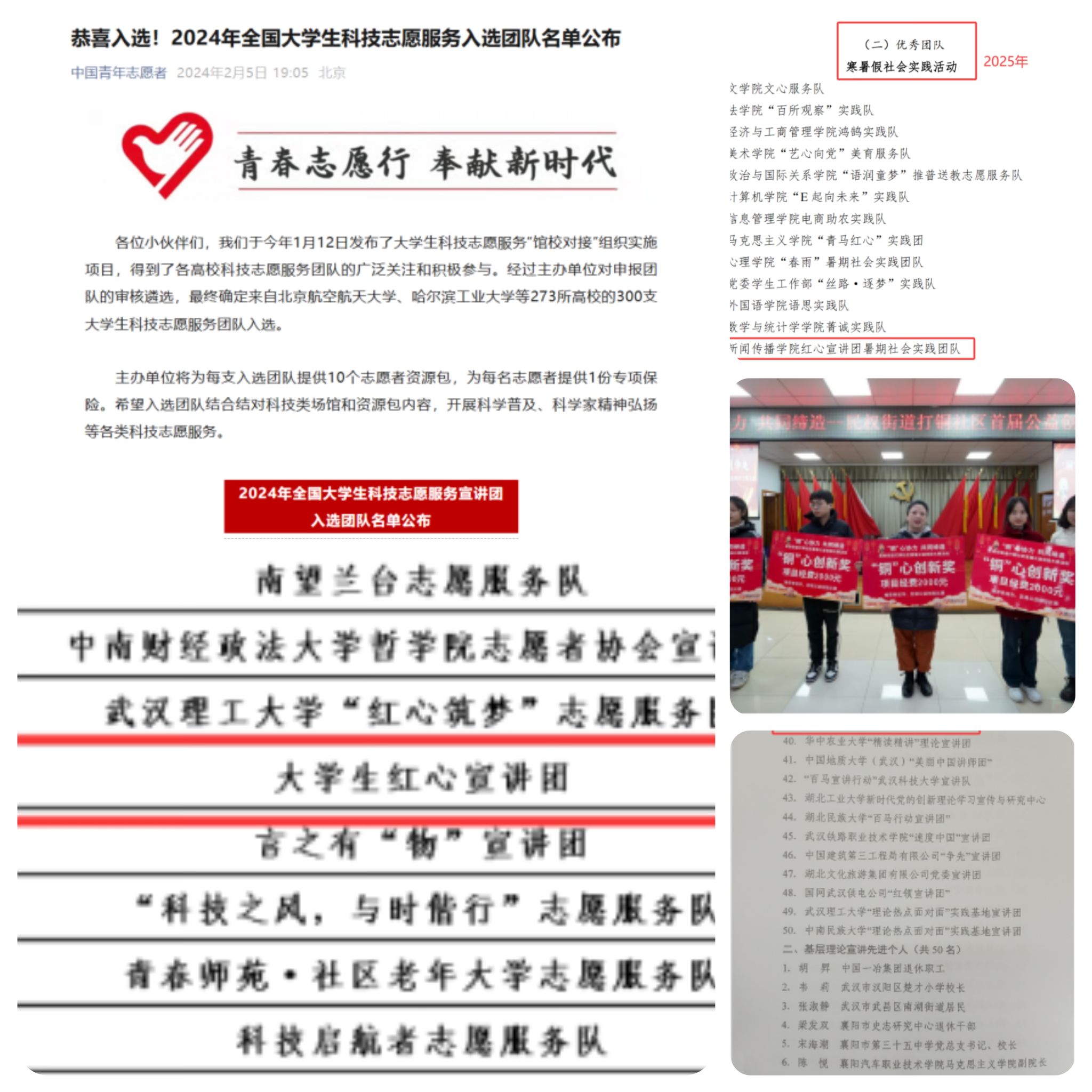 新闻传播学院始终坚持以习近平新时代中国特色社会主义思想为指导,深入学习贯彻党的二十大和二十届历次全会精神及全国教育大会精神,全面落实立德树人根本任务,以“培养卓越新闻传播人才、服务国家和地方战略需求”为使命,将文明单位创建融入学院事业发展全过程。2023年1月以来,学院先后获评湖北省基层理论宣讲先进集体等荣誉,学院教师获评学校“十佳班主任”“优秀辅导员”,学生获“校长奖”2人、国家级学科竞赛重大奖项10余项,形成了“党建领航、文化浸润、实践育人”的文明创建模式。