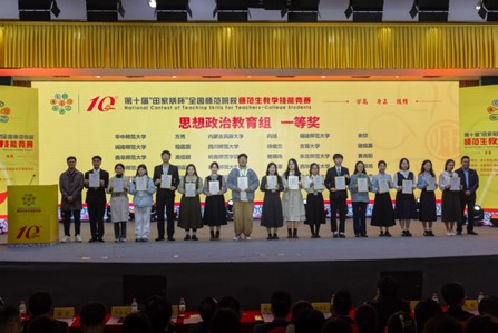 我院方秀同学获第十届“田家炳杯”全国师范院校师范生教学技能竞赛决赛思想政治教育组一等奖第一名